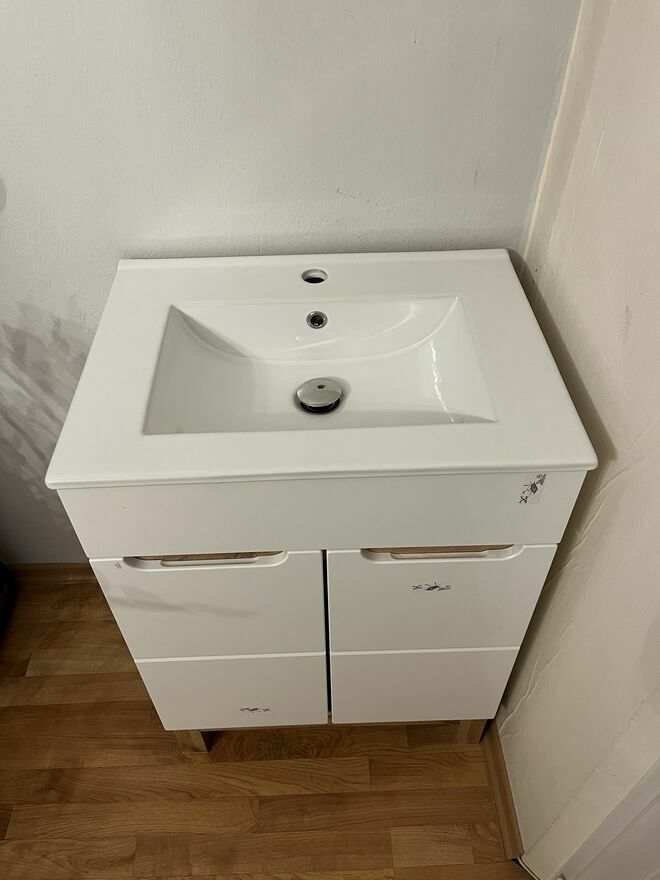 Sprzedam nowiutką szafkę stojącą z umywalką białą.